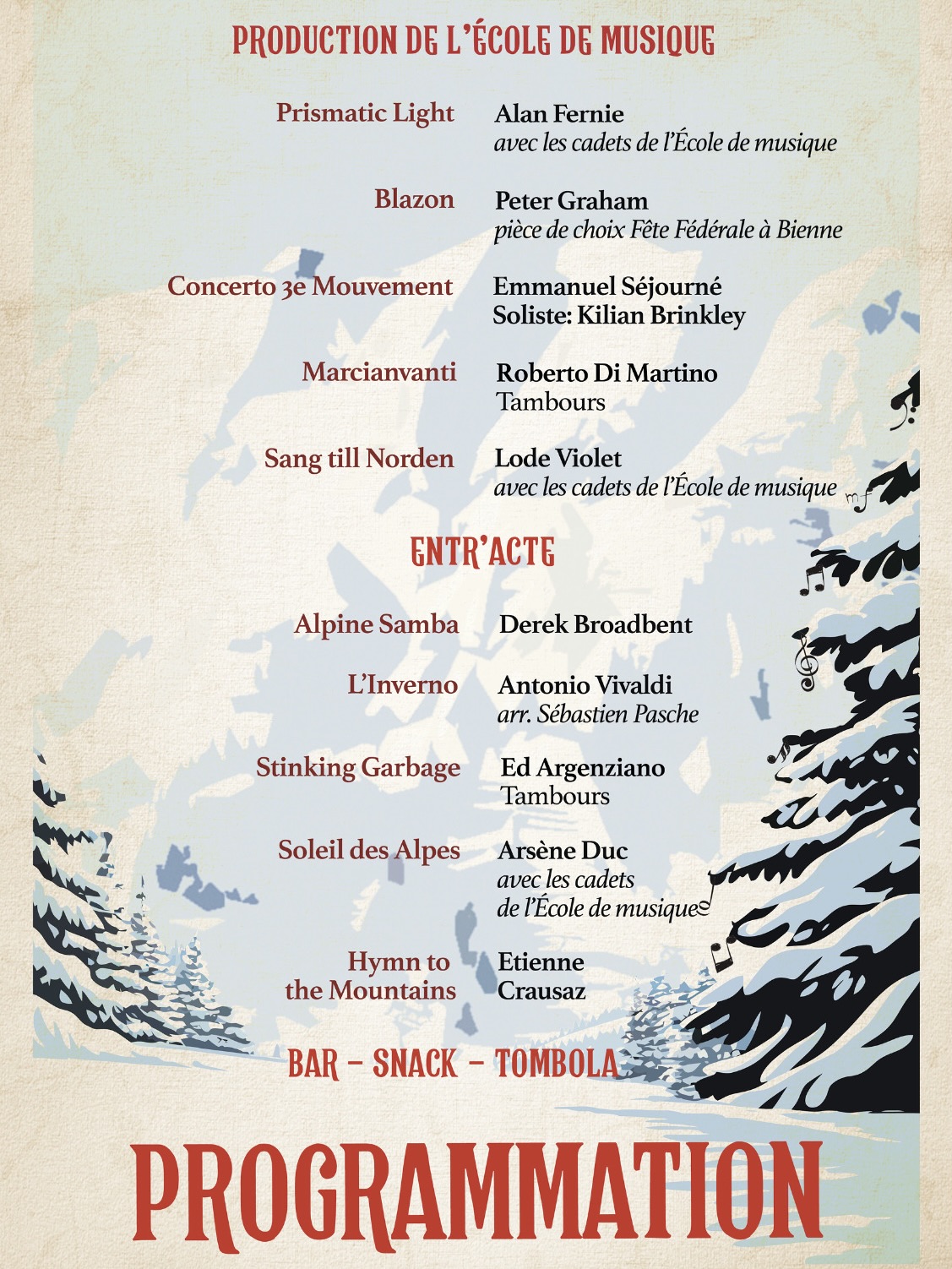 Enfilez vos bonnets et bottes et rejoignez-nous pour nos concerts annuels les 27 et 28 février, à la Grande Salle de Forel et le 7 mars, au forum de Savigny